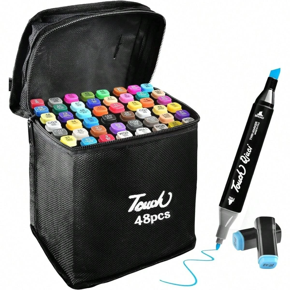 Plumones doble punta con 48 piezas. Ideal para principiantes y profesionales,