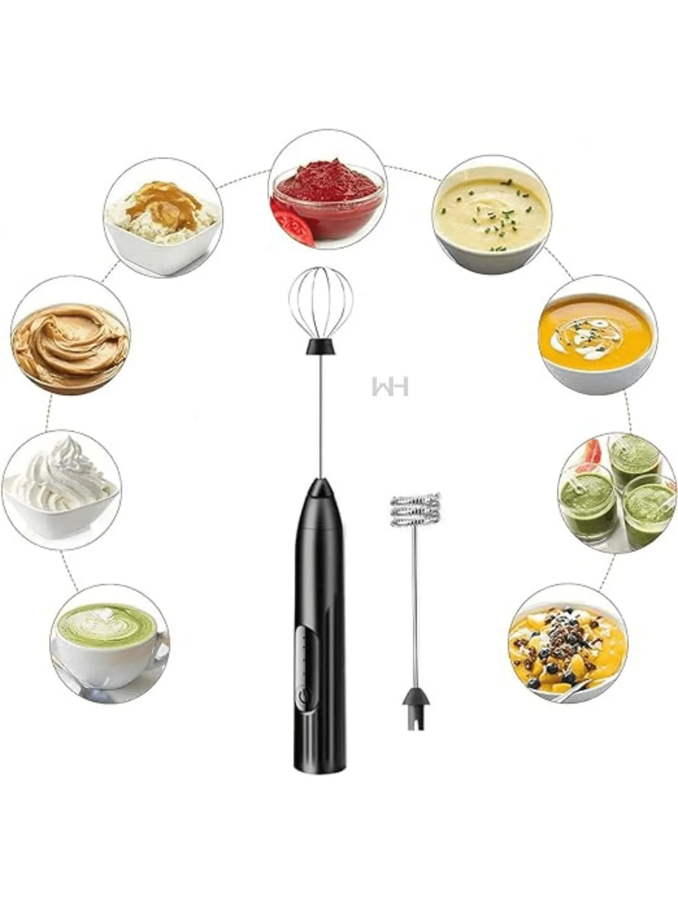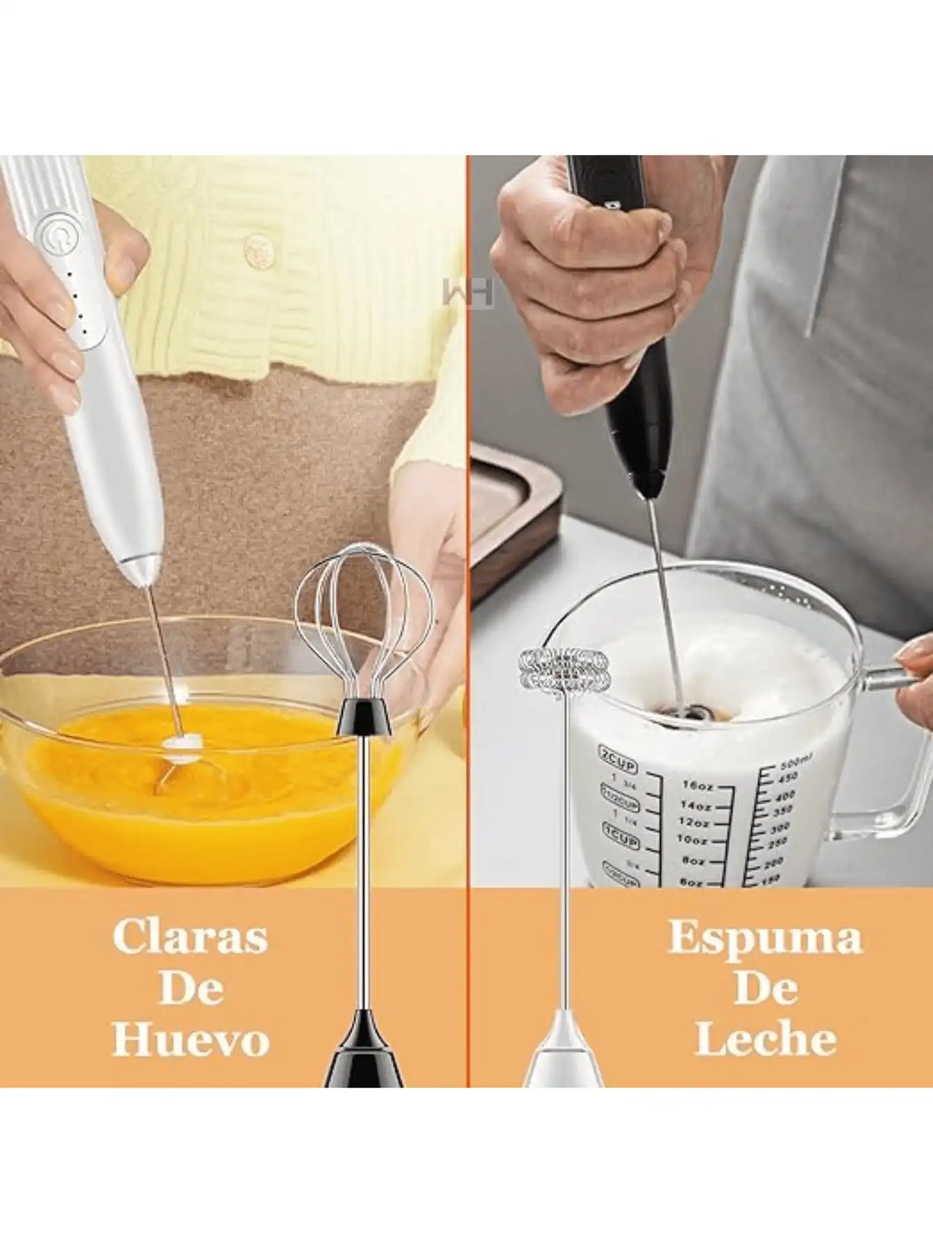 -Hay 2 batidores reemplazables. Elija el cabezal del batidor de resorte para hacer la espuma perfecta para su café de la mañana y la tarde. El cabezal del batidor de globo lo ayuda a batir los huevos y la crema batida esponjosa en poco tiempo.