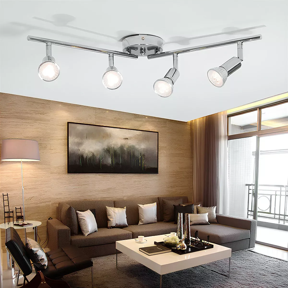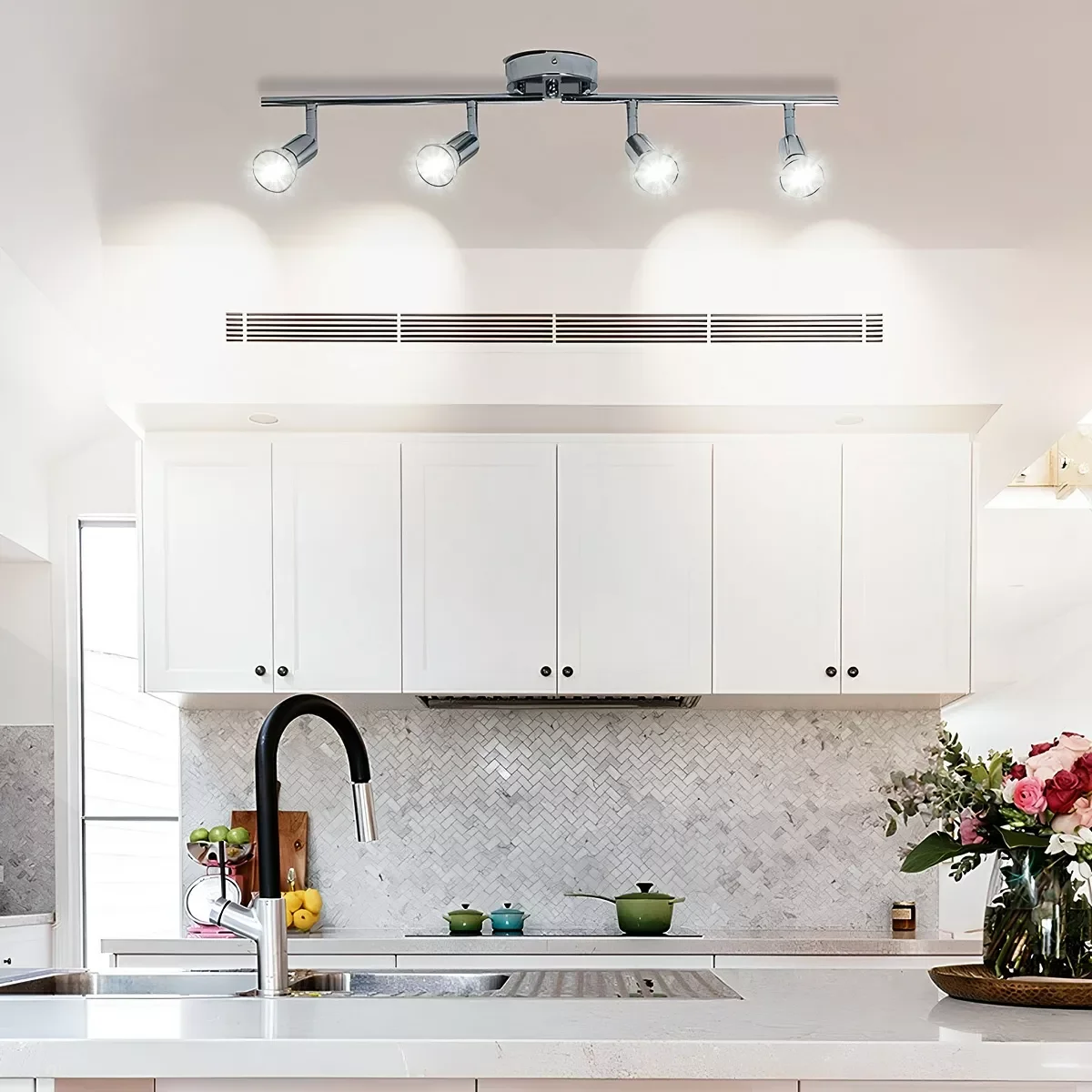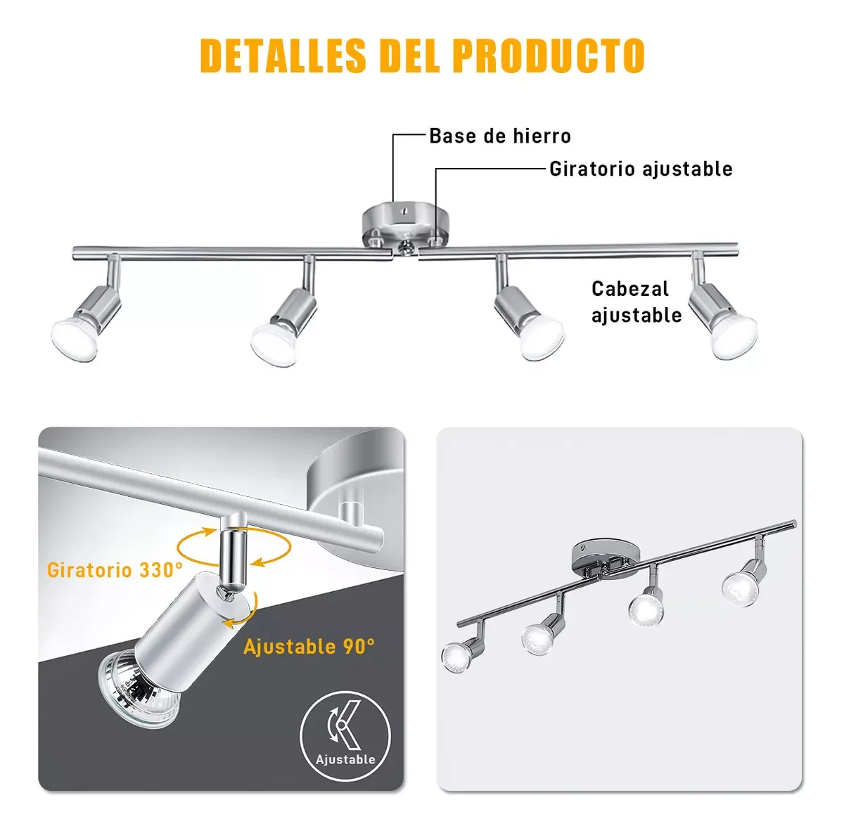 Ajustable y flexible: dos brazos giratorios con luces ajustables le permiten apuntar la luz donde más la necesita. El brazo se puede girar completamente 360, 4 cabezales de pista se pueden girar 330 horizontalmente y 90 verticalmente. Flexibilidad en cómo desea que brillen las luces al extenderlas y girarlas según sea necesario.