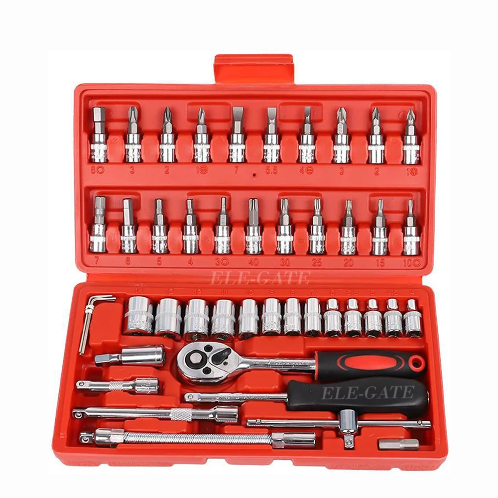 Juego de Llaves de Trinquete con 46 Piezas Para Reparación Automotriz y Hogar