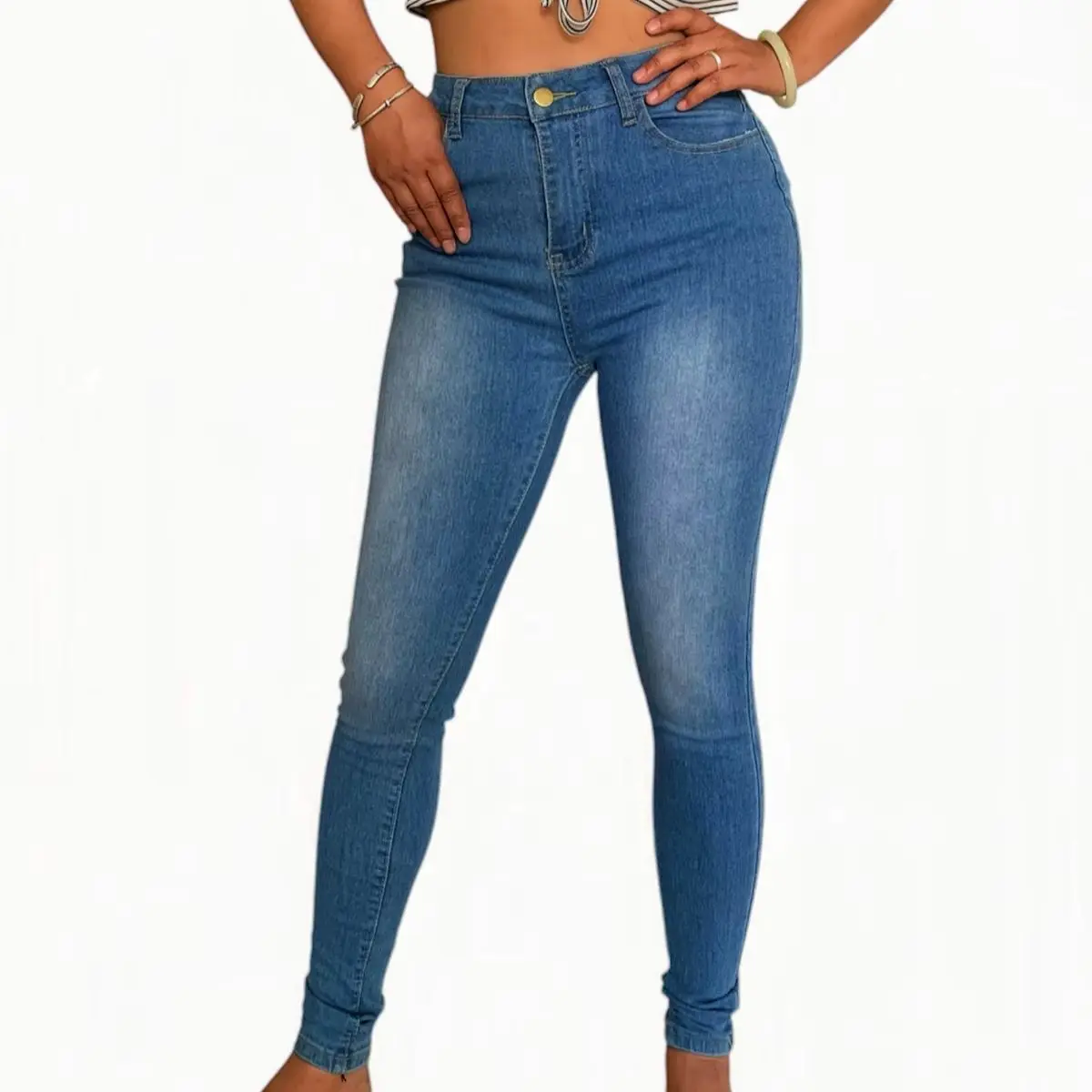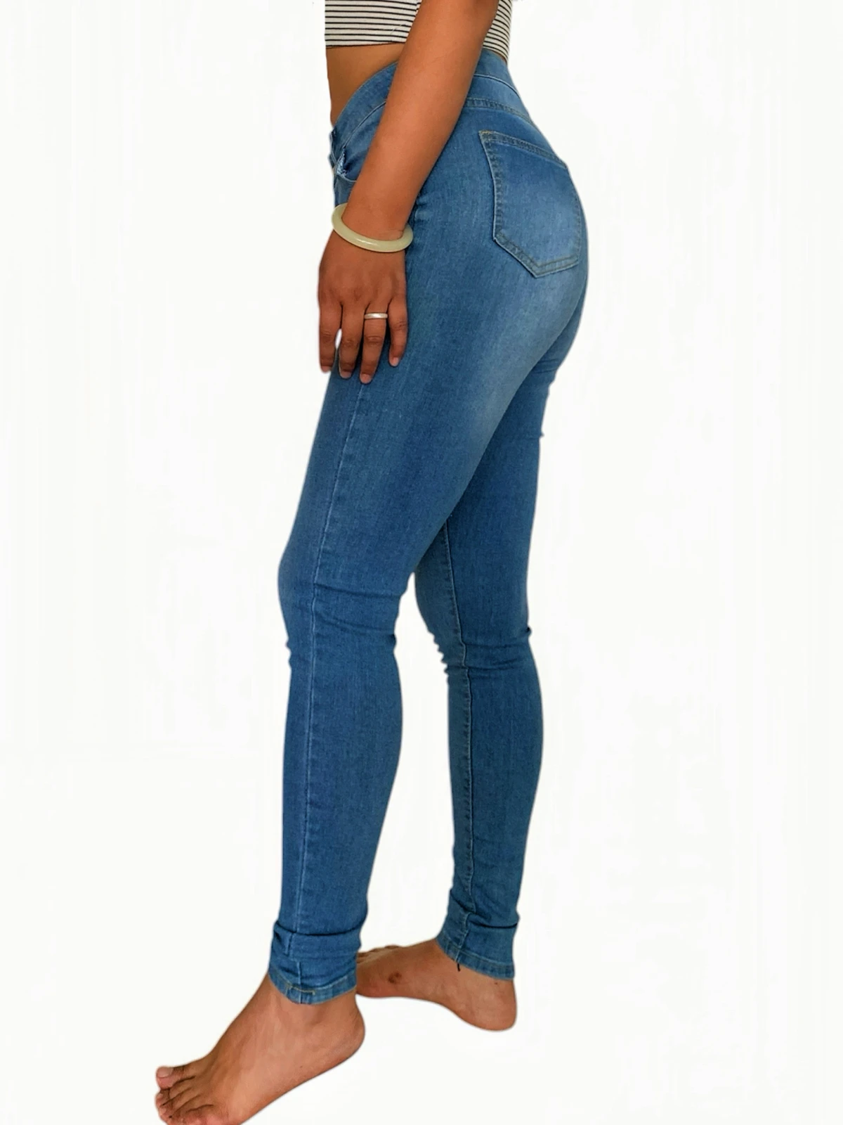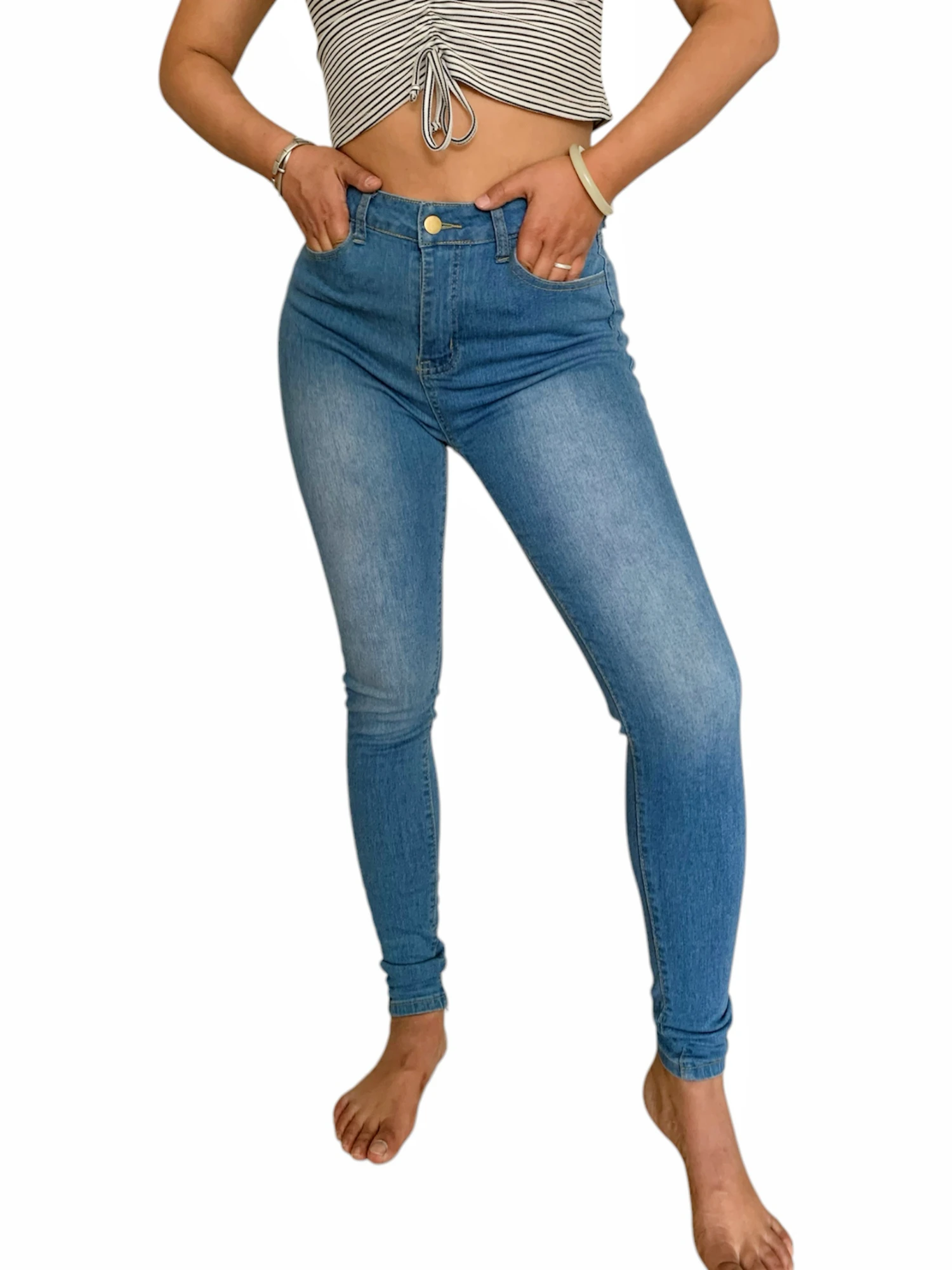 Pantalón de Mezclilla Jeans Dama Stretch Skinny Tiro Alto Básico Azul