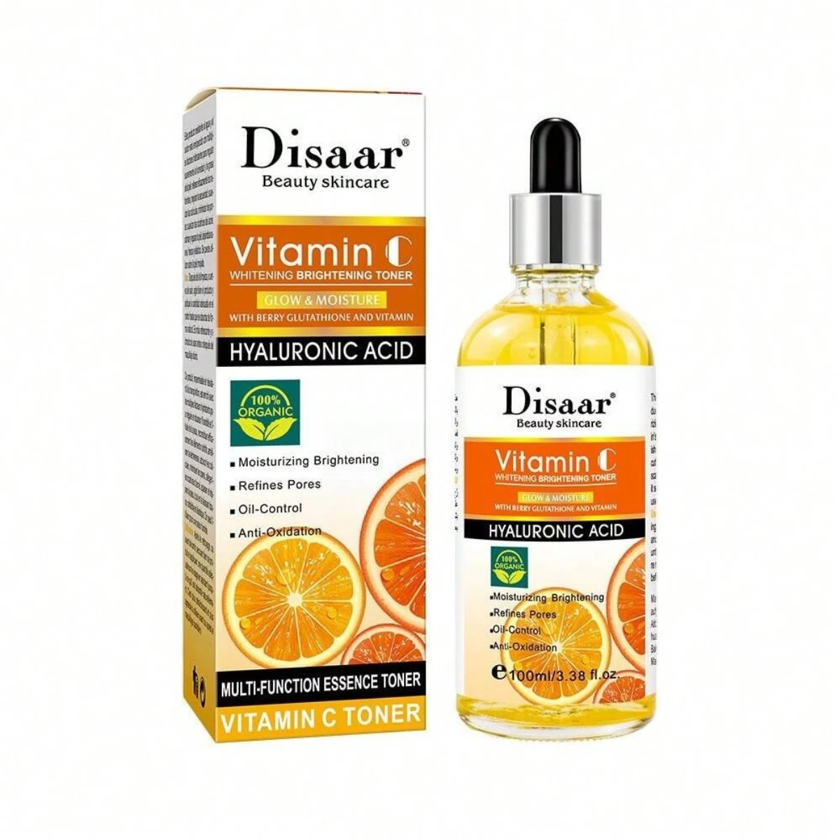 Serum Vitamina C con Ácido Hialurónico. Aclara manchas, minimiza poros y disminuye líneas de expresión. Hidratante.