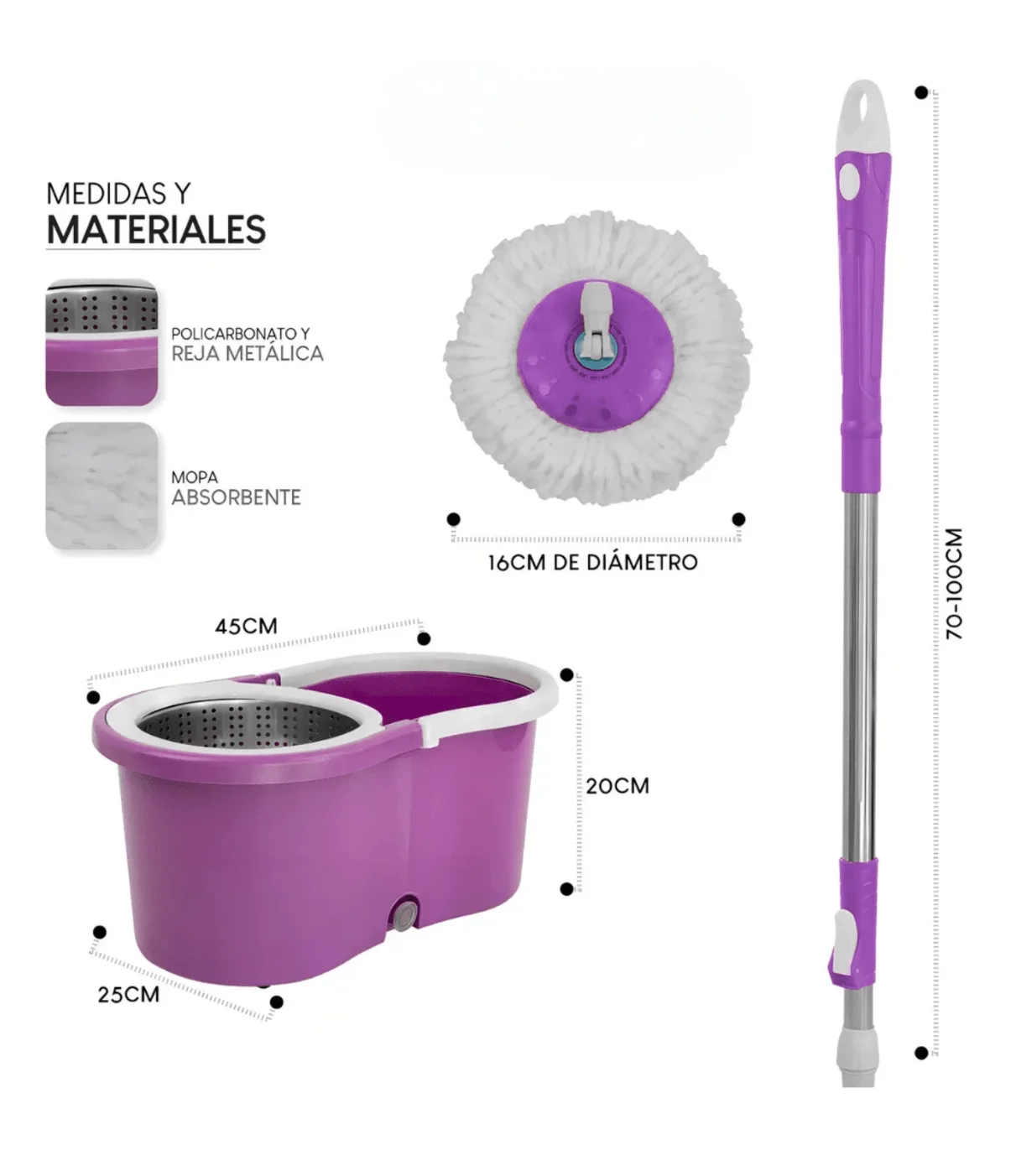 Reseña honesta: Llegó antes del tiempo señalado,llego bien y completo. Un poco confuso en la parte de la punta pero al final,trabaja muy bien,humedece bien y seca bien. Se centrífuga correcto y limpias más rápido y sin mojarte las manos. Eso si,se siente algo frágil así que recomiendo uso moderado,no uso rudo,tanto al limpiar como al accionar los giros de enjuague y secado. Viene con dos mechudos,uno de para usar y el otro como repuesto.LO RECOMIENDO AMPLIAMENTE relación precio calidad