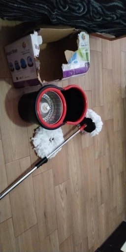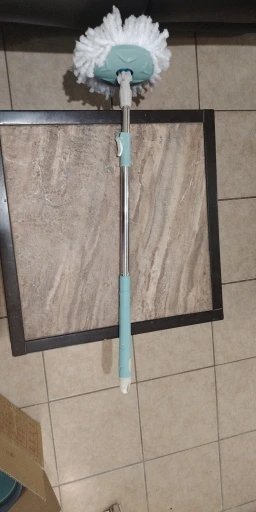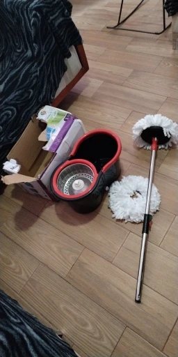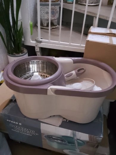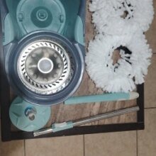 llegó muy dañada la caja exterior y la cubeta un poco raspada. pienso que el mop es muy pequeño y se atora un poco para cambiar el ángulo, además la extención del tubo es muy corta y tienes que estar agachado para poder tener buena posición. Por el precio no está mal, Pero podría estar mejor.