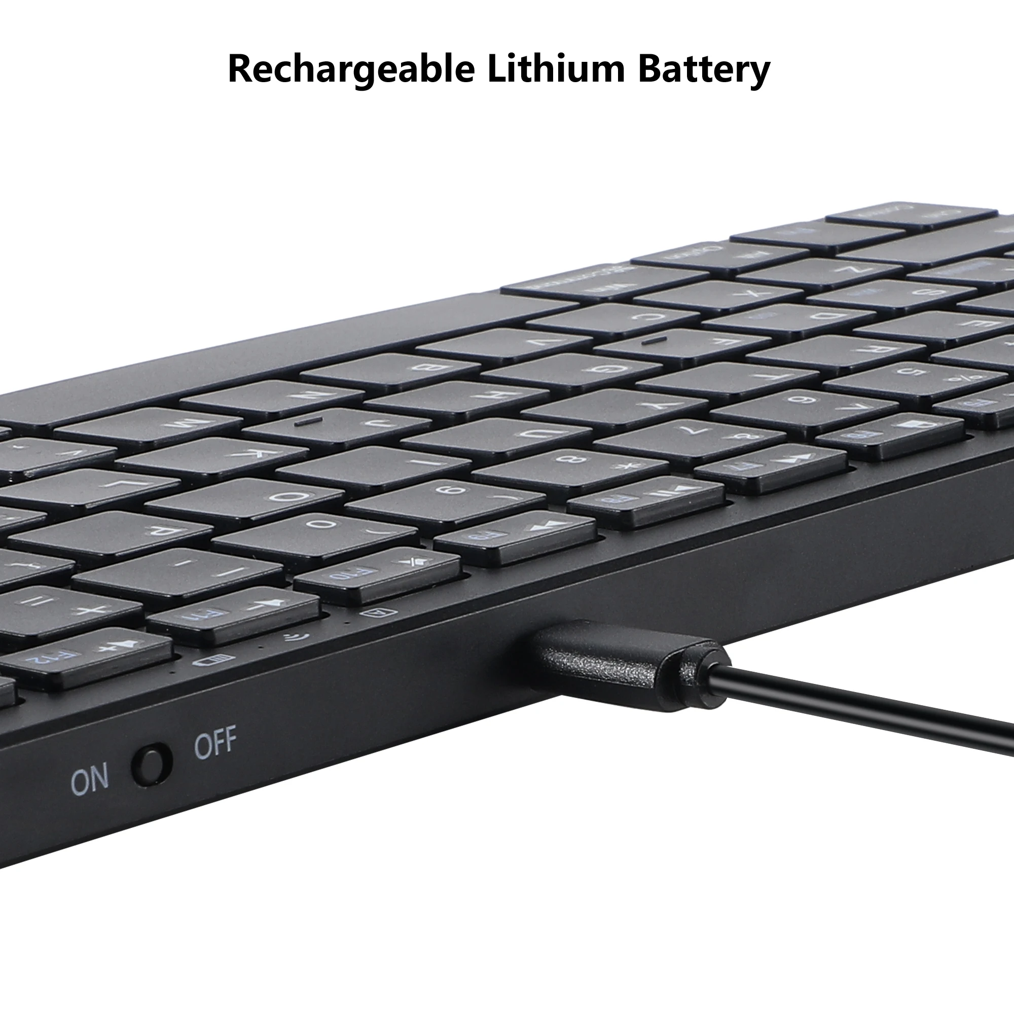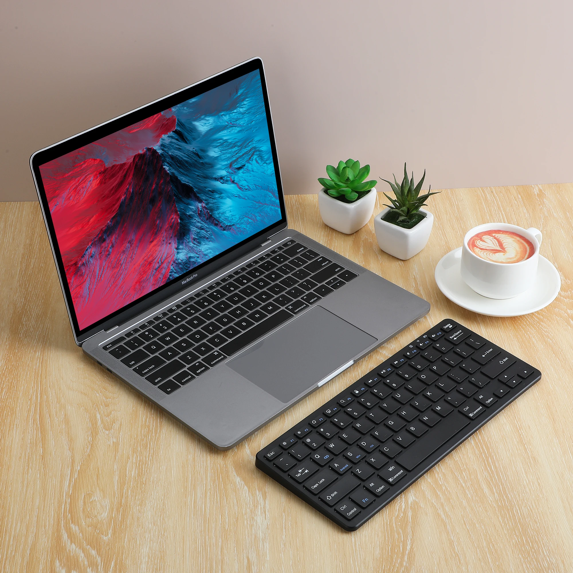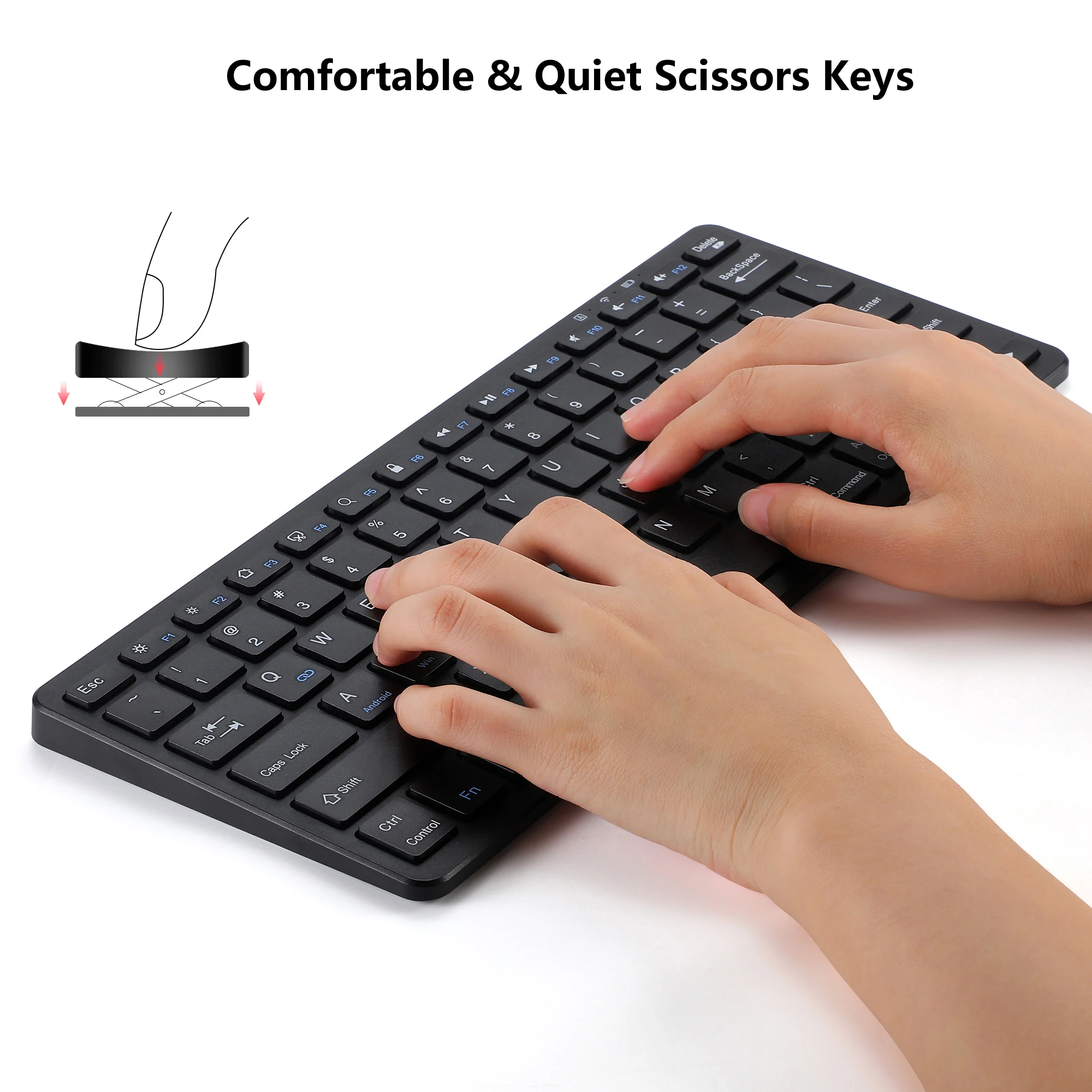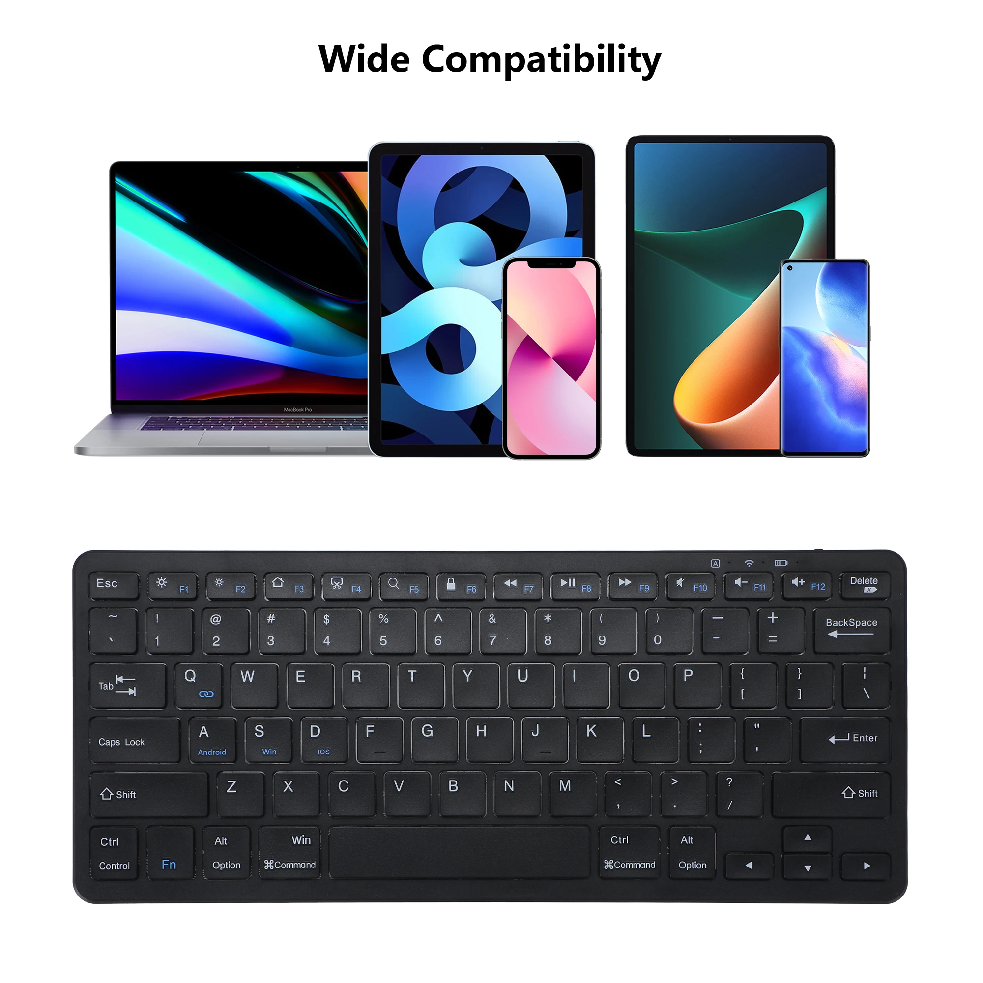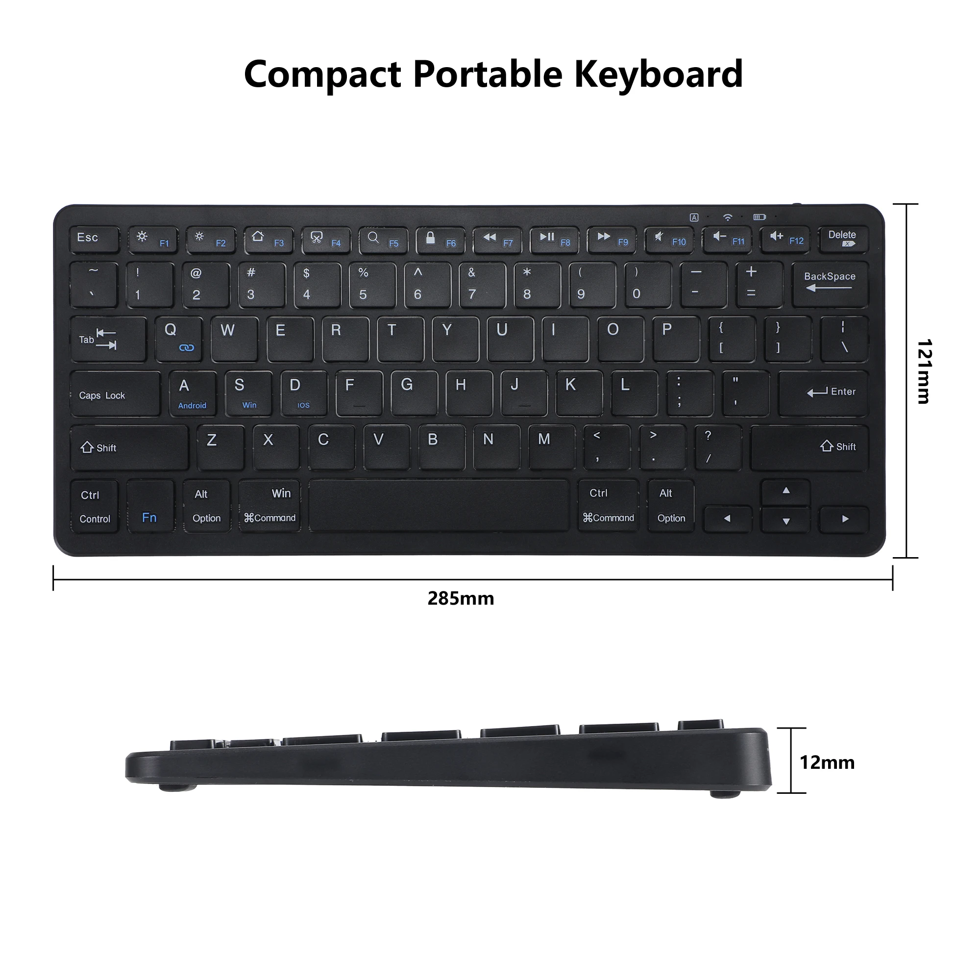 Teclado compacto de viaje: el diseño ultrafino y ligero le permite llevarlo en su bolso para facilitar su transporte, para que pueda trabajar con él en cualquier momento y en cualquier lugar.(Este teclado de tableta inalámbrico) PPerfecto para viajes, hogar, oficina, viajes de negocios y estudiantes.